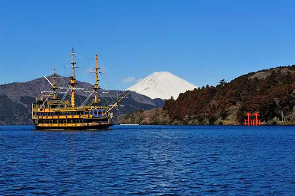 O Lago Ashinoko é outro que oferece belas vistas, dessa vez para o icônico Monte Fuji. A travessia é feita por navios piratas que levam os turistas às extremidades do lago. O entorno possui hotéis de luxo e muitas montanhas.