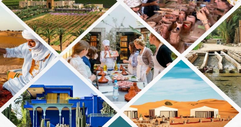 Circuito operado com um número reduzido de pessoas, no máximo 10 passageiros por veículo. 10 dias de viagem passando por Marrakech, Casablanca, Rabat, Meknes, Fés, Ifrane, Midelt, Erfoud, Merzouga (acampamento no deserto), Gorges du Todra, Skoura, Ouarzazate, Ait Benhaddou, Marrakech